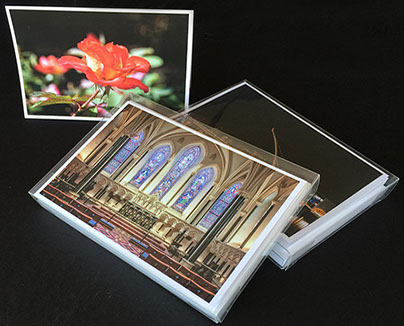 There are several sets of note cards available for purchase. These are professionally printed on high quality 60lb paper using the finest inks. The cards are 4.50" by 6.26" (also referred to as an A6 size) and come with envelopes. The cards are blank inside so you can write your own personal message.