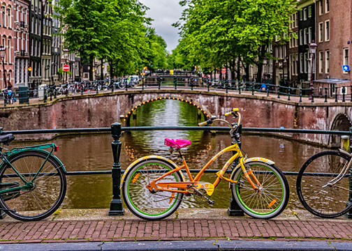 Bicycle on bridge in Amsterdam, Netherlands