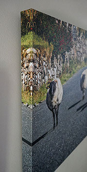 You can purchase canvas prints. These are photographs made on artist canvas with a 1.5 inch frame with the image wrapped around the sides like the example on the right. These are available in a variety of sizes from a small 5"x 7" to a large 24"x 36". Prices can be provide on request, but a 16"x 20" canvas wrap runs around $95.00 plus shipping.